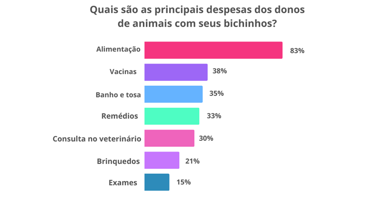Quando perguntados sobre a renda mensal, 41% dos tutores investem até R$ 300 por mês com seus pets. Já para 48%, o valor para cuidar de seus companheiros equivale a até 5% da renda mensal, enquanto 31% chegam a investir entre 6% e 10% de sua renda. No entanto, 39% dos tutores dividem as despesas com outras pessoas, mostrando que o cuidado com os animais muitas vezes é um compromisso compartilhado.