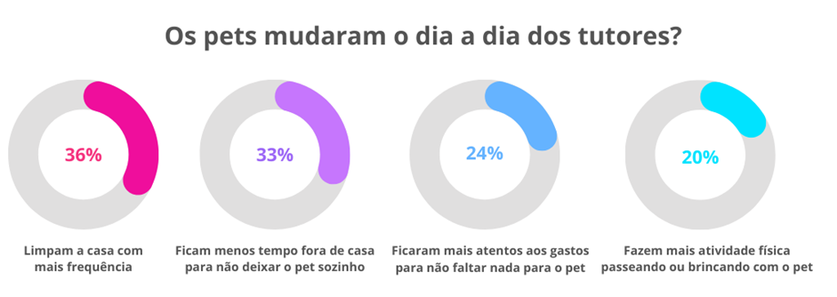 Quando perguntados sobre como pets ajudam no dia a dia, 89% dos tutores afirmam que os pets melhoraram o bem-estar emocional e 92% relatam que a presença dos animais ajudou a aliviar os sintomas de solidão e estresse. Os números mostram que o vínculo vai muito além do afeto, mas tem impacto direto na qualidade de vida.