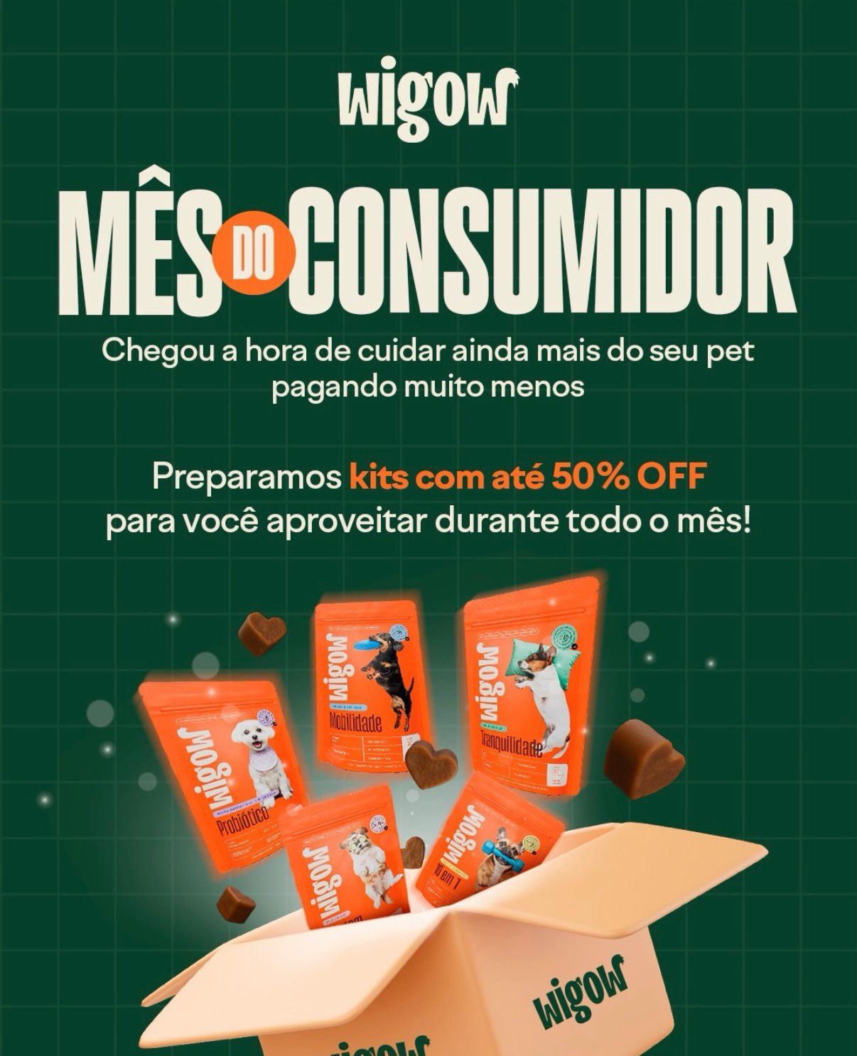 A campanha do Mês do Consumidor está disponível no e-commerce oficial da marca, no endereço www.wigow.pet, durante todo o mês de março.